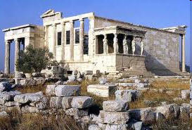 En la meseta se alzaba el templo de Atenea , llamado Partenón que, mutilado y medio hundido, maravilla a les visitadores por la perfección de sus líneas. Más lejos se llegaba al templo del antiguo rey Ereoteo, en cuya tribuna las columnas estaban reemplazadas por estatuas de mujeres, y a la capilla de la Victoria Aptera.